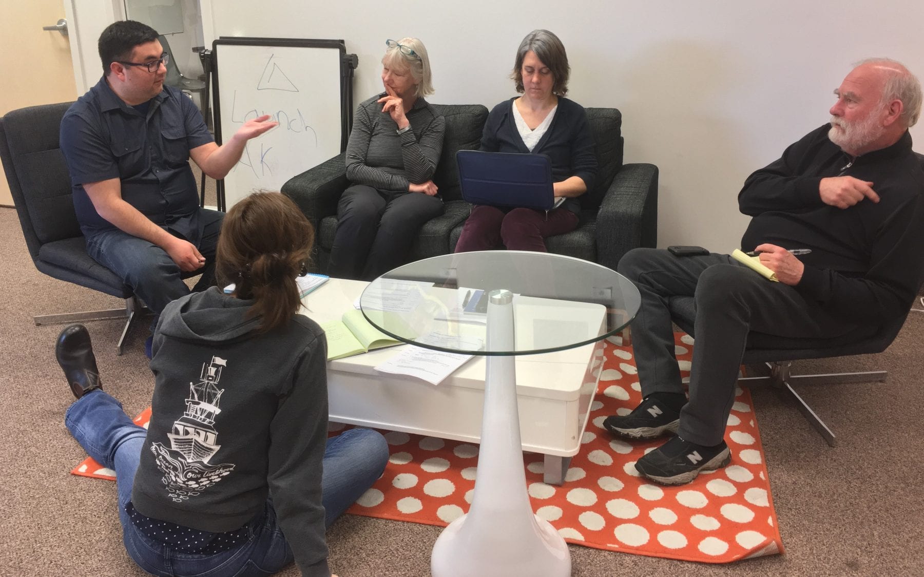 The Well-being and Salmon Systems Working Group meets at NCEAS’ Santa Barbara headquarters (above). Members of each group focus intensively on specific issues related to salmon and people in Alaska during the often week-long discussions. SASAP’s deliberate emphasis on bringing together indigenous knowledge and western science perspectives stands out among NCEAS’ many projects.